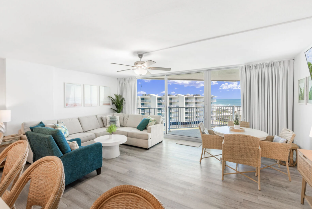Sandcastle Resort Condominiums caters to these longer stays with fully furnished condos that include everything guests need to feel at home. Complete kitchens make meal preparation simple, while living rooms and private balconies provide comfortable spaces for daily routines. High-speed internet ensures remote work is possible, allowing professionals to balance productivity with the relaxation of beach life.